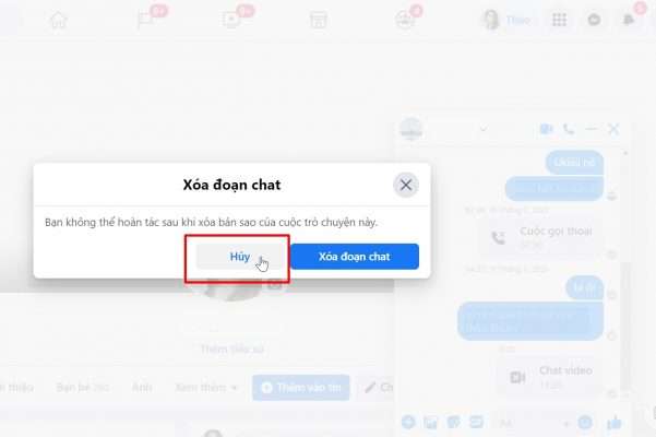 - Nếu tin nhắn không thể khôi phục tin nhắn đã xóa trên Facebook là do bạn đã xóa trực tiếp tại phần tin nhắn bao gồm 2 lựa chọn là Xóa cuộc trò chuyện và Xóa tin nhắn