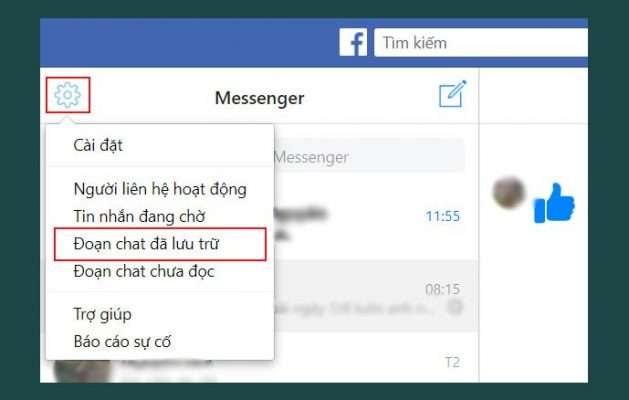 Bước 2: Sau khi đăng nhập -> nhấp chọn vào biểu tượng Cài đặt có hình bánh răng và chọn Đoạn chat đã lưu trữ.