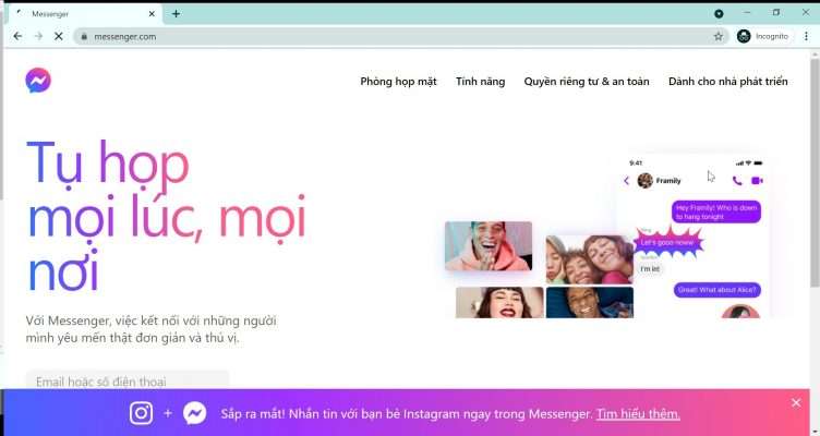 Bước 1: Truy cập trang web chính thức của ứng dụng Messenger trên Facebook theo link: https://www.messenger.com/ -> Đăng nhập bằng tài khoản Facebook của bạn.