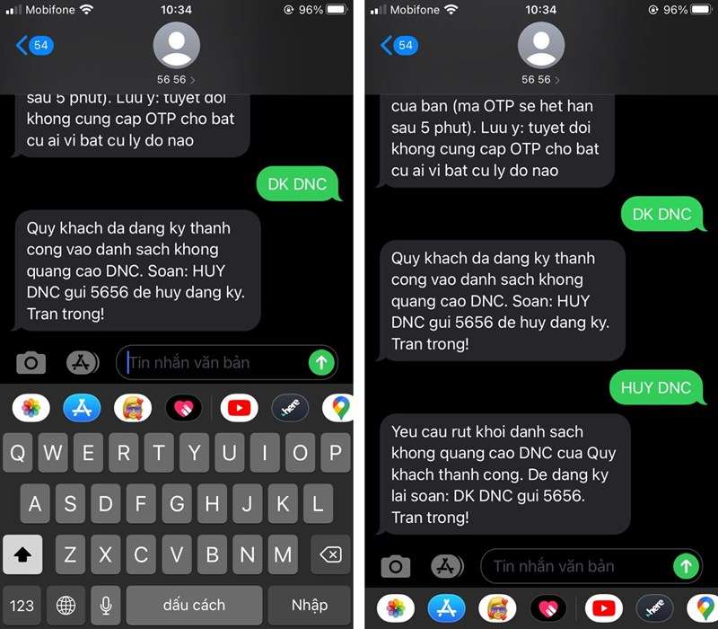 • Để hủy đăng ký, bạn soạn tin nhắn với cú pháp: HUY DNC gửi 5656 (miễn phí).