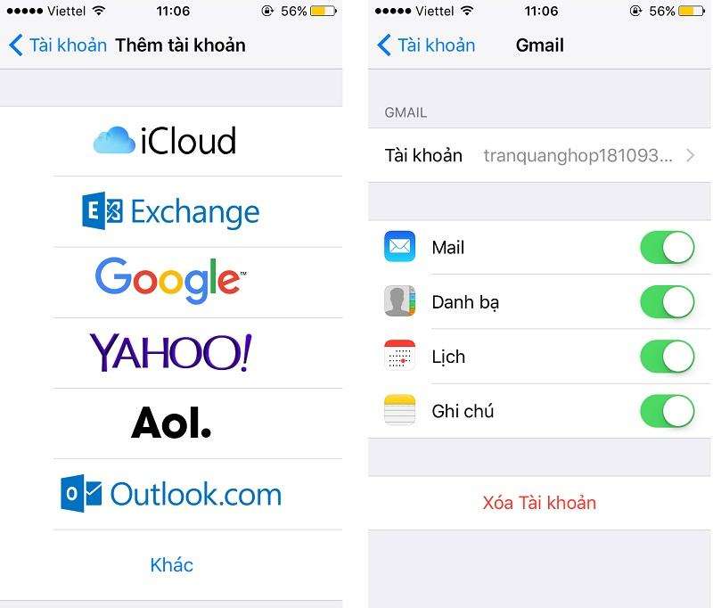 Vào cài đặt > Email > Tài khoản > Thêm tài khoản > Chọn ‘Google”.