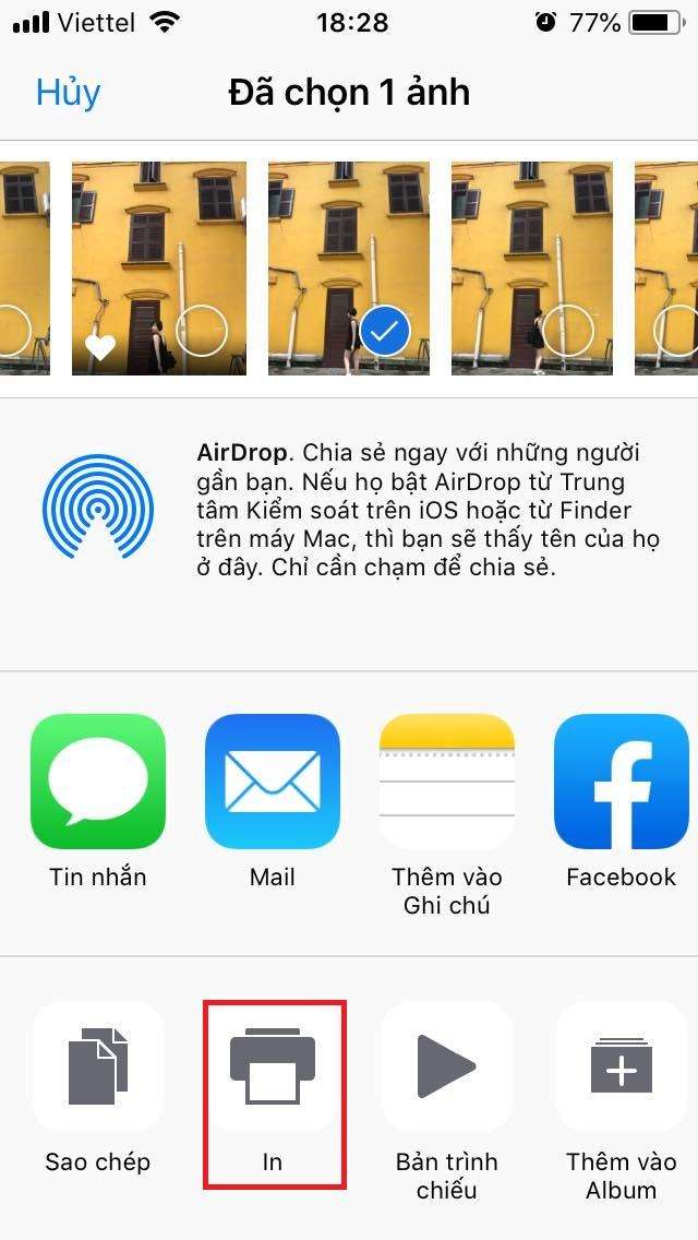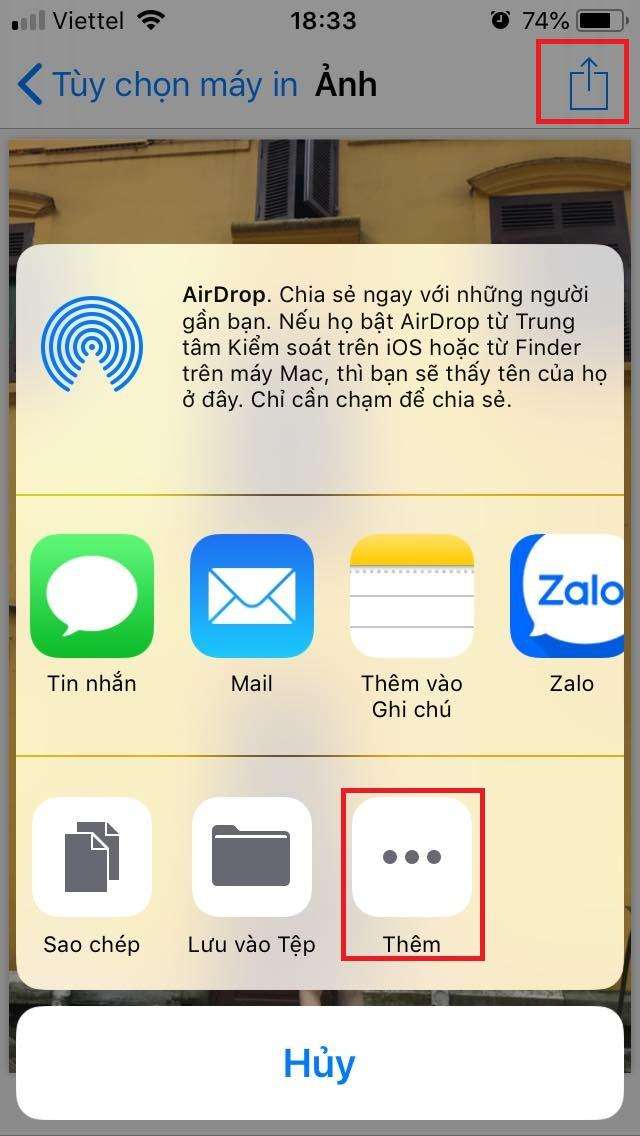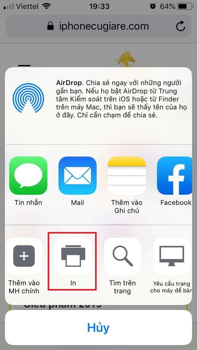 Bước 2: Sau đó chọn biểu tượng chia sẻ và In.