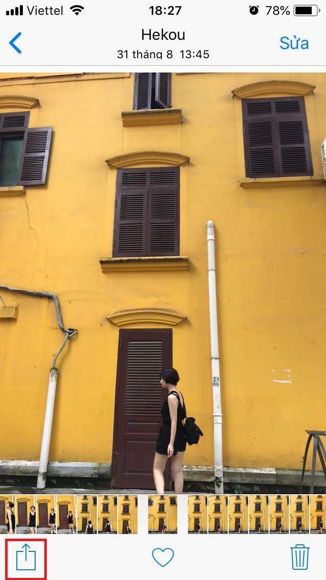 Bước 2: Mở ứng dụng Ảnh trong iOS và chọn hình ảnh bạn muốn lưu dưới dạng PDF, sau đó nhấn nút Chia sẻ