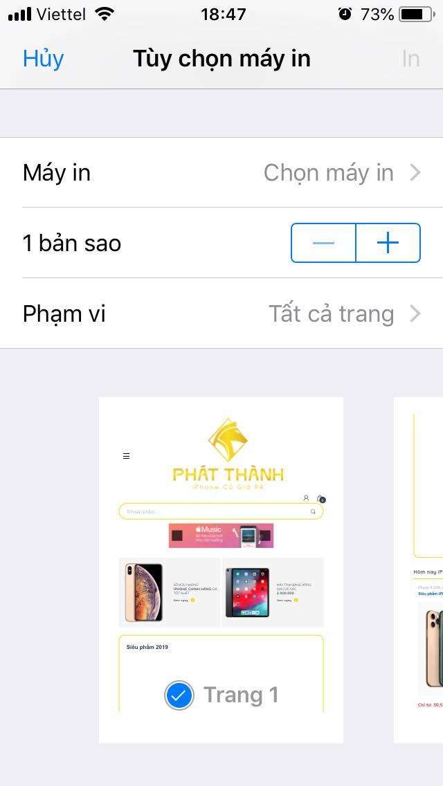 Bước 3: Giao diện Tuỳ chọn máy in sẽ được hiện ra. Hãy dùng 2 ngón tay phóng to một trang in bất kỳ.