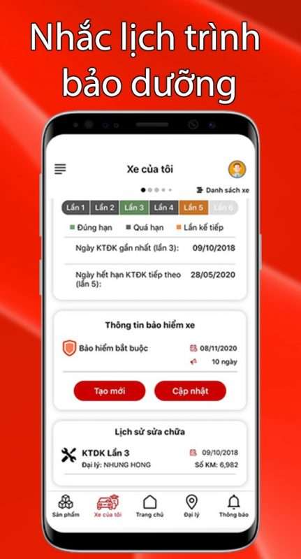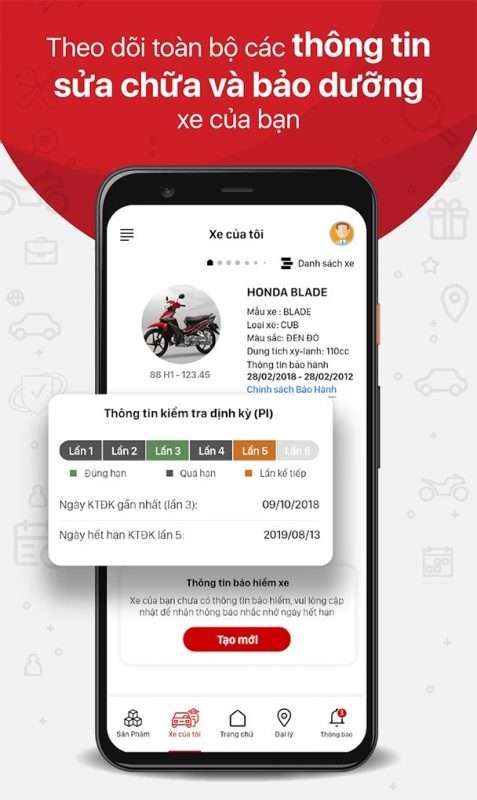 Các thông tin về bảo hành xe như chương trình bảo hành định kỳ bao gồm thay nhớt; chính sách bảo hành xe; hay các thông tin về xe như màu sắc; dung tích máy; loại xe; v.v … sẽ được lưu vào điện thoại, thay vì phải mất công lưu vào sổ thông tin bảo hành như trước đây. Giúp bạn kiểm tra dễ dàng, tiết kiệm thời gian.