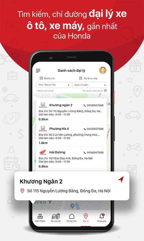 #3.Tìm đại lý dịch vụ và sửa chữa Honda gần nhất