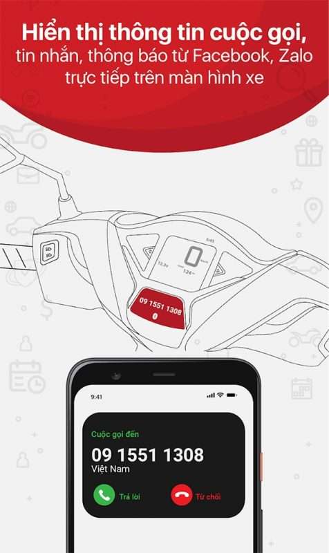 Ngoài ra, khi bạn kết nối ứng dụng với ô tô, trên ô tô sẽ hiển thị cuộc gọi đến; thông báo; tin nhắn; bao gồm: