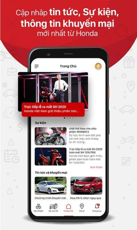 Xem các sản phẩm mới của Honda tại mục Sản phẩm và tìm các Head gần nhất tại mục Đại lý.