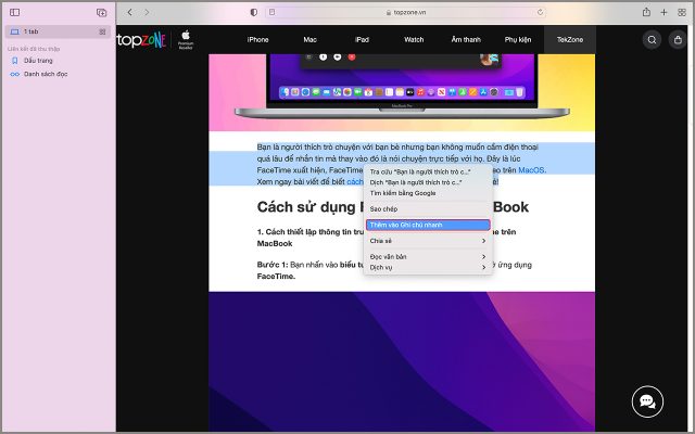 #4. Thêm văn bản đã đánh dấu Safari vào ghi chú nhanh