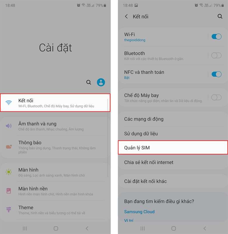 Bước 1. Vào Cài đặt > Mạng di động > Quản lý SIM và đặt SIM 1 hoặc SIM 2 làm SIM dữ liệu di động mặc định. (Nếu thiết bị chỉ có 1 SIM > Bỏ qua bước này).
