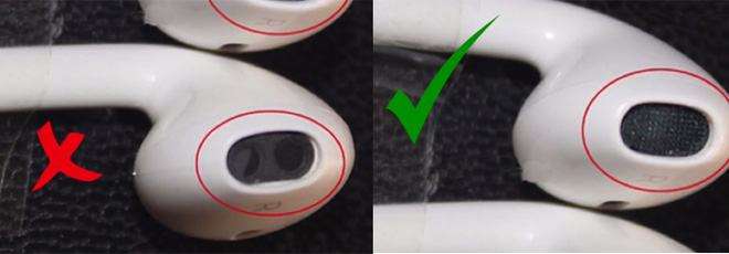 Phần ống tai nghe trên tai nghe iPhone luôn có một lớp lưới bằng kim loại để bảo vệ linh kiện bên trong khỏi bụi bẩn. Nếu bạn không thấy tai nghe có phần lưới này, hoặc lưới làm bằng chất liệu không phải kim loại thì khả năng cao tai nghe đó là hàng giả. Tương tự, phần lưới của lỗ thoát âm cũng làm bằng kim loại.