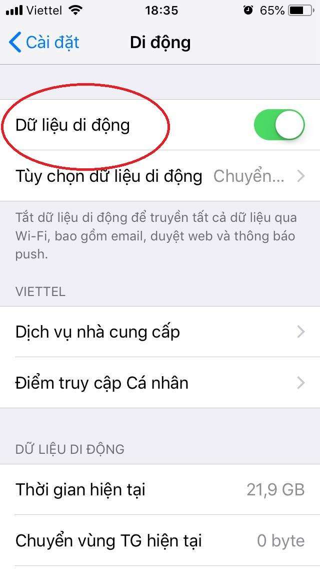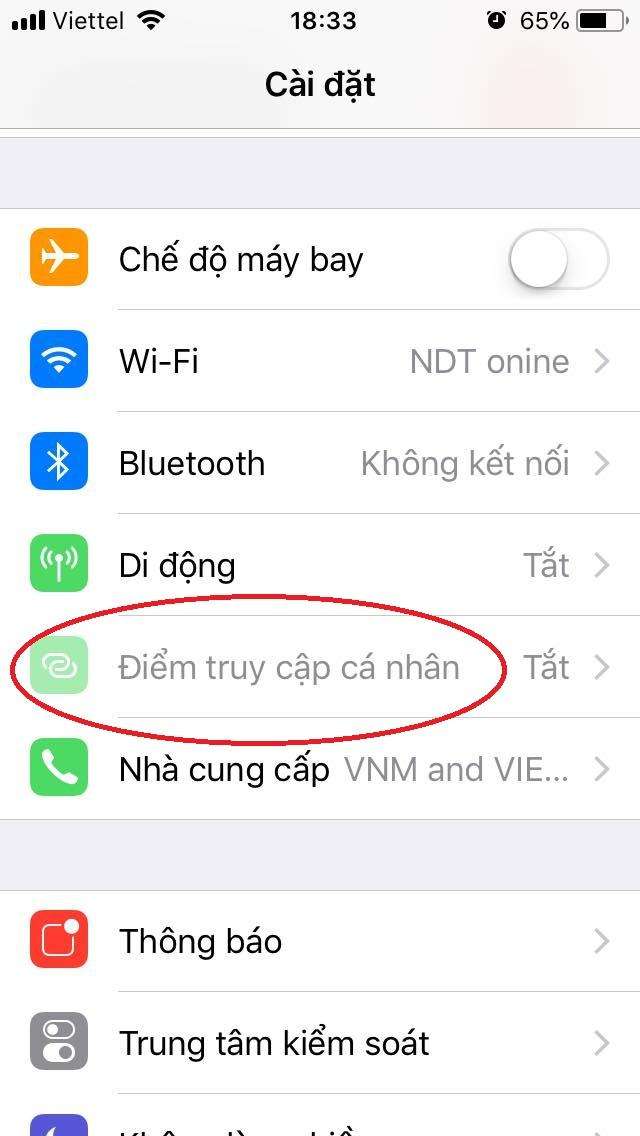 Bấm Personal Hotspot (Dữ liệu di động) để bắt đầu quá trình cài đặt điểm truy cập