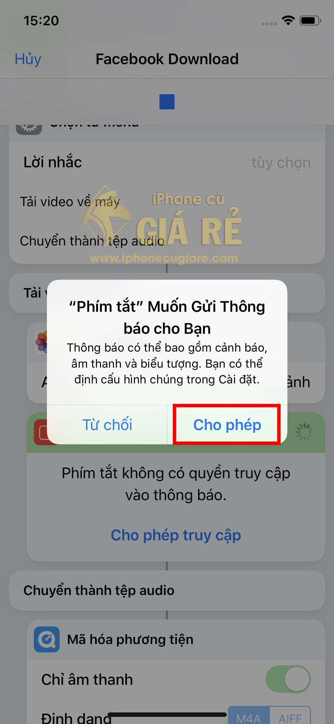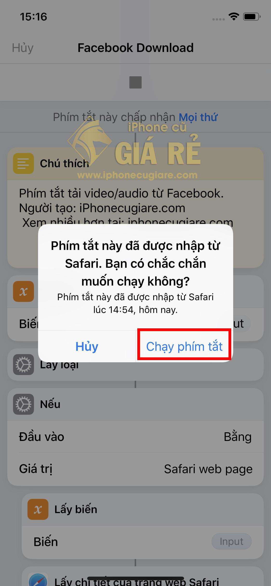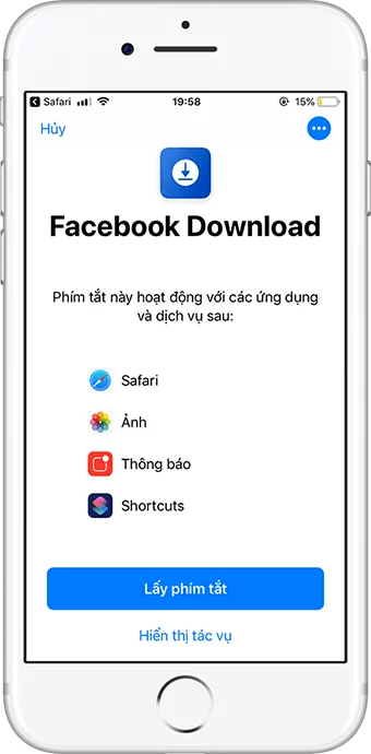 Bước 1: Nhấn vào link bên dưới để tải phím tắt Facebook Download vào ứng dụng Phím tắt của bạn.