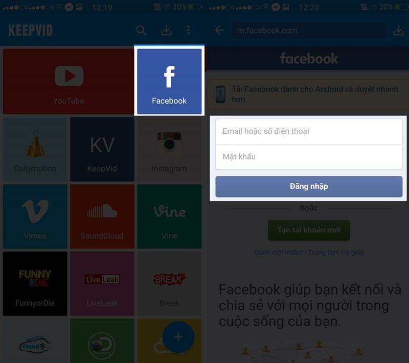 Mình xin hướng dẫn ngắn ngọn quá trình tải video facebook bằng ĐT Android như sau: