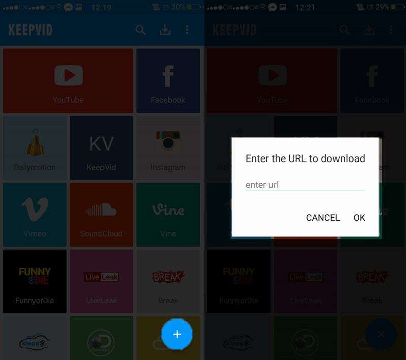 Ngoài ra, ứng dụng còn cho phép bạn có thể tải về một video bất kì dựa vào địa chỉ của nó. Người dùng chỉ cần chọn vào dấu “+” ở góc, sau đó dán địa chỉ clip mình muốn là xong.