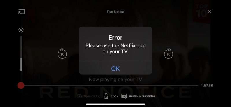 Khi chúng tôi cố gắng phát trực tuyến từ iPlayer trên iPhone của mình sang máy Mac của chúng tôi, nó đã phát (mặc dù hơi lag), vì vậy chúng tôi nghĩ Netflix đang cấm nó, có thể vì nó vẫn có thể phá vỡ các điều khoản và điều kiện từ Netflix. dẫn đến việc chấm dứt đăng ký của bạn.