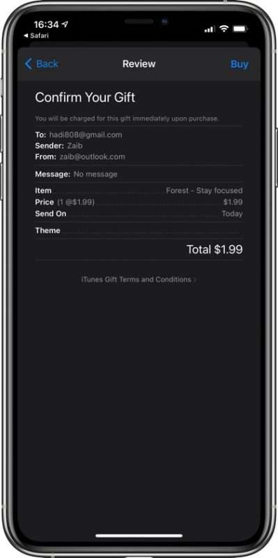 - Số dư thẻ quà tặng không thể được sử dụng để quà tặng ứng dụng từ iPhone.