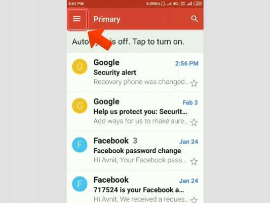 Bước 1. Vào Gmail => Nhấp biểu tượng 3 gạch.