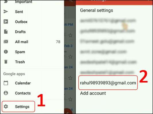 Bước 2. Chọn Settings (Cài đặt) => Chọn tài khoản Gmail để đổi mật khẩu.