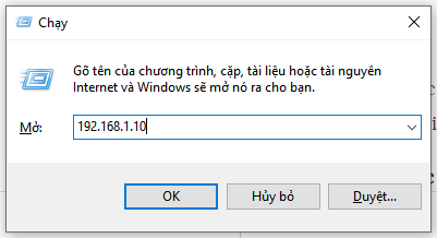 Bước 1: bấm tổ hợp phím windows + R bên bàn phím máy tính. Lúc này, trên màn hình sẽ xuất hiện tab run, nhập địa chỉ IP của máy chủ vào mục open và nhấn “ok”.