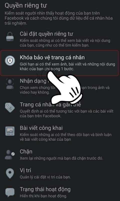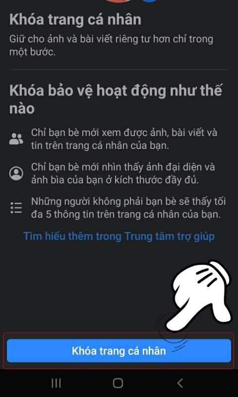 Bước 3. Sau đó chọn Khóa trang cá nhân