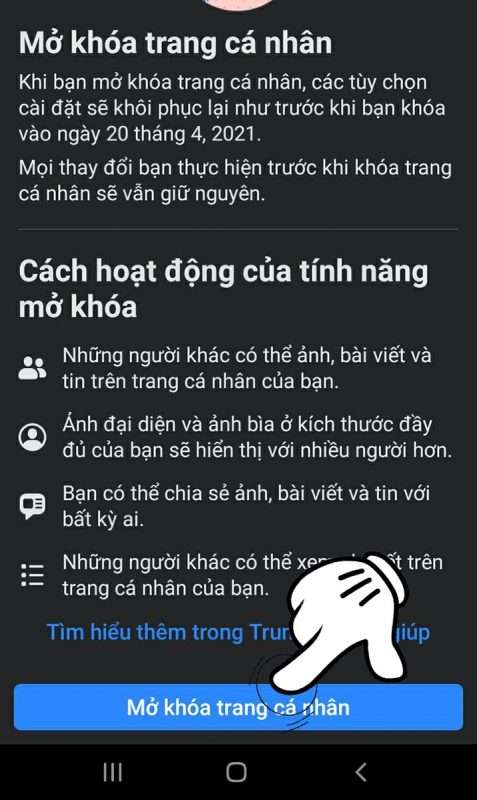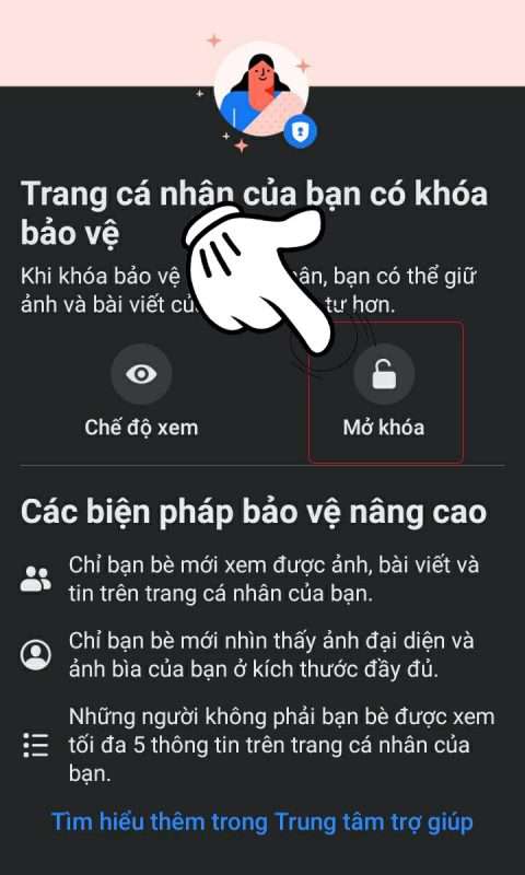 Hướng dẫn cách mở khóa bảo vệ trang cá nhân