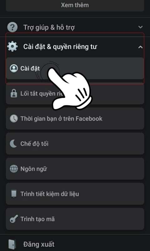 Bước 1. Vào Facebook, chọn cài đặt quyền riêng tư và chọn Cài đặt.
