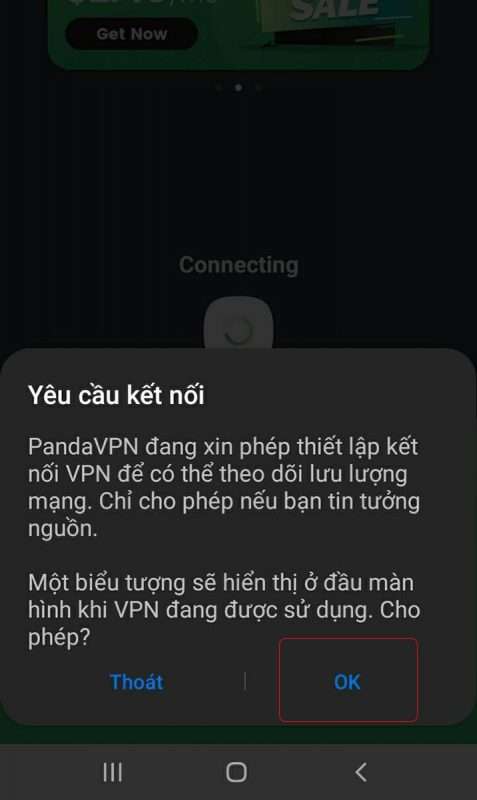 Bước 2: Nhấp OK để cho phép ứng dụng thiết lập kết nối.