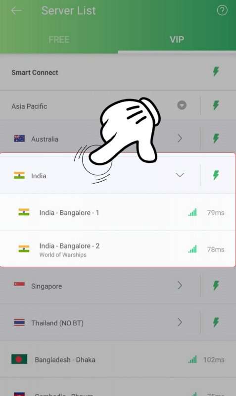 Bước 4: Chọn Ấn Độ và chọn một trong hai khu vực.