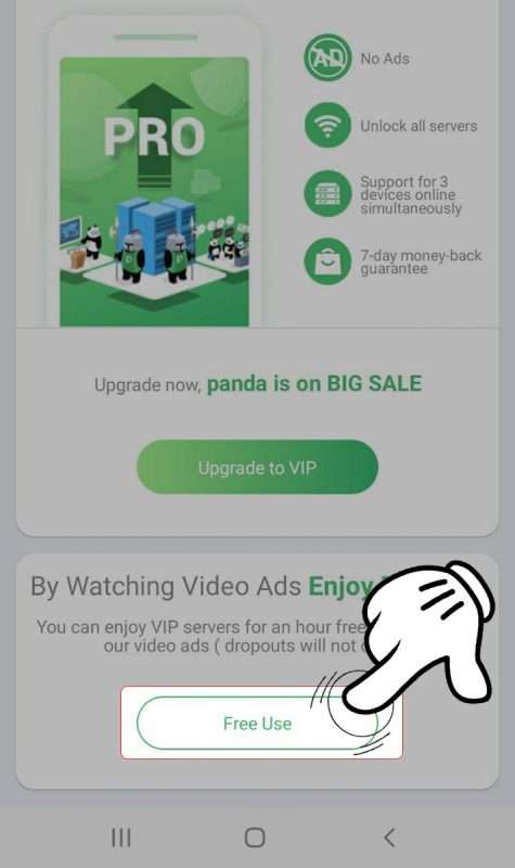Bước 5: Nhấp vào Free use/Sử dụng miễn phí, sau đó bạn cần xem tất cả các quảng cáo để fake IP thành công.