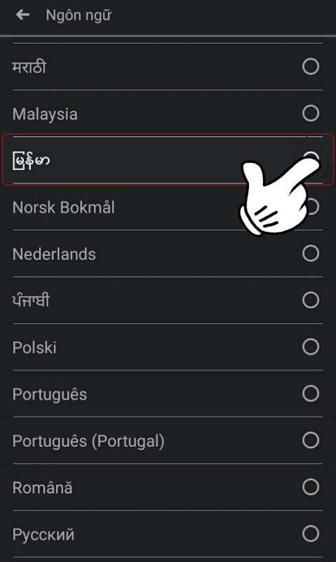 Bước 2. Duyệt và chọn ngôn ngữ của bạn မြန်မာဘာသာ.