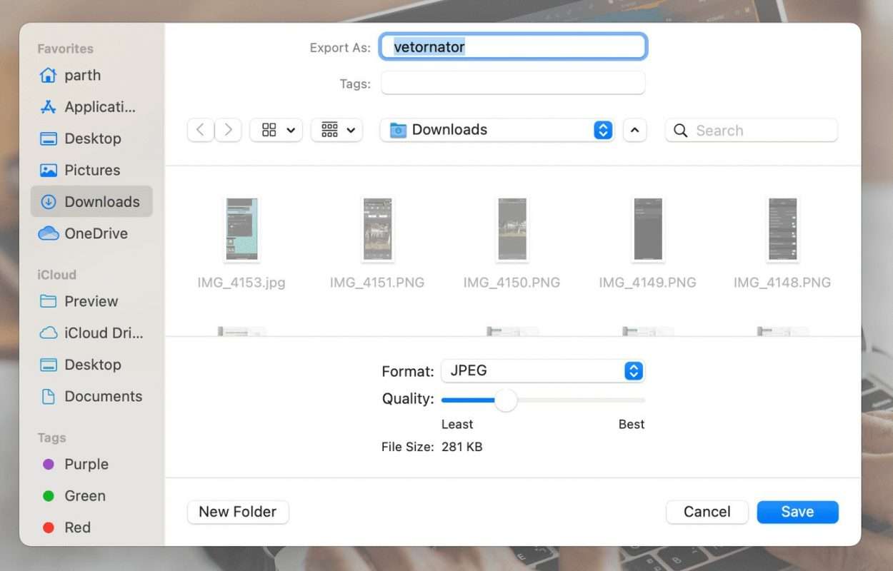 Bước 4. macOS sẽ yêu cầu bạn chọn vị trí và loại tệp. Trong tùy chọn loại tệp, bạn sẽ có một thanh trượt để giảm kích thước hình ảnh.