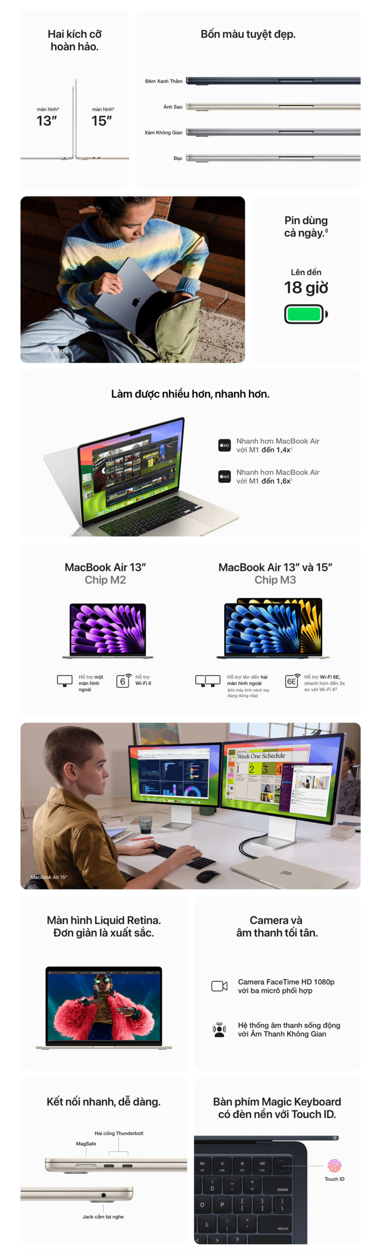 | Màu sắc | Gray, Midnight, Silver, Starlight |