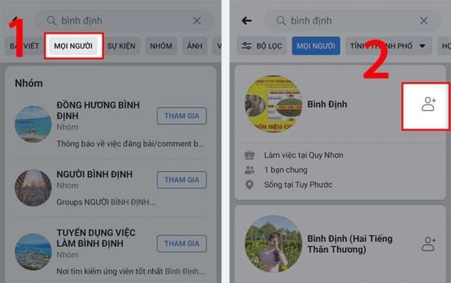 Bước 2. Chọn mục Mọi người => Click chọn biểu tượng Thêm bạn bè ở bên trái tài khoản Facebook mà bạn muốn kết bạn.