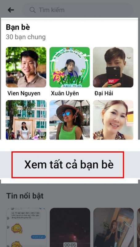 Bước 2. Click vàoTất cả bạn bè => Bấm vào tài khoản Facebook của một người bạn.