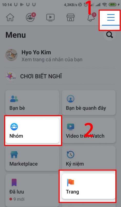 Bước 1. Vào Facebook => Chọn Nhóm hoặc Trang.