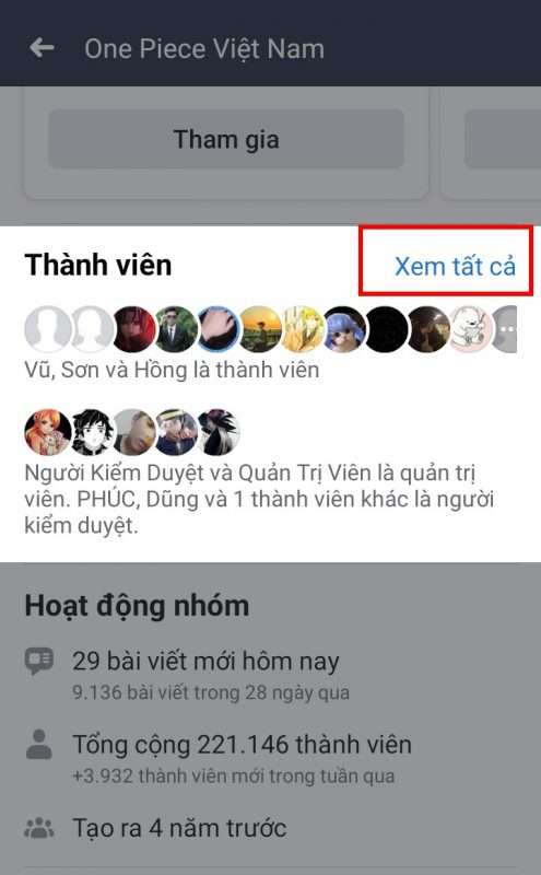 Bước 5. Kéo xuống phần Thành viên => Nhấn vào Hiển thị tất cả.