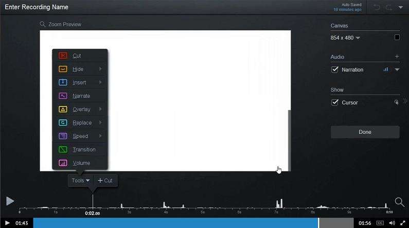 Với Camtasia , bạn có thể quay video hoạt động chuyên nghiệp trên màn hình máy tính của mình với nỗ lực tối thiểu. Ngoài việc quay video, Camtasia cũng cho phép bạn nhập video HD vào bản ghi của mình từ nguồn bên ngoài. Camtasia độc đáo ở chỗ nó có thể tạo các video tương tác chứa các liên kết có thể nhấp để tạo nội dung video động phù hợp để sử dụng trong lớp học hoặc nơi làm việc.