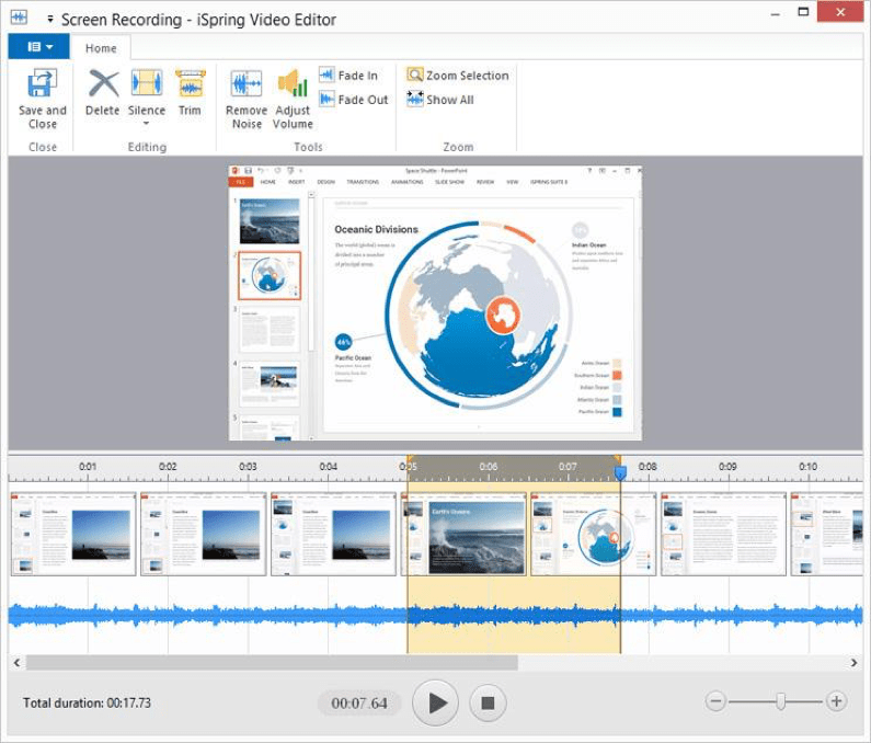 iSpring Free Cam là phần mềm ghi màn hình miễn phí dành cho Windows để giúp bạn ghi lại các đoạn ghi hình dễ dàng. Một số công cụ và chức năng chỉnh sửa video đi kèm với phần mềm để cho phép bạn xóa các đoạn video, loại bỏ nhiễu nền và áp dụng hiệu ứng âm thanh. Video còn có thể được lưu ở định dạng WMV hoặc có thể được tải thẳng lên YouTube luôn nha.