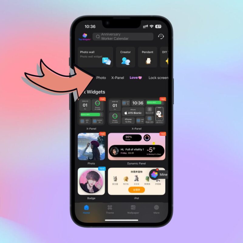 Điều đầu tiên bạn cần làm để tạo một widget ảnh chuyển động trên iPhone đó là tải và cài đặt ứng dụng Top Widgets từ App Store. Sau khi quá trình cài đặt hoàn tất, hãy mở ứng dụng Top Widgets từ màn hình chính của iPhone. Tiếp đến bạn hãy lần lượt thực hiện các bước sau đây:
