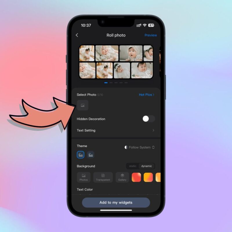 - Bước 2: Hãy chọn những bức ảnh bạn muốn thêm vào widget ảnh chuyển động. Sau khi chọn xong, hãy nhấn vào Add to my widgets để thêm vào danh sách widget.