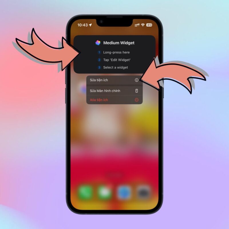 - Bước 6: Nhấn giữ lên widget để mở bảng tùy chỉnh, chọn Sửa tiện ích.